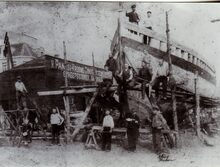 Foto 15 x 10. Bouw van een houten vissersvaartuig op de scheepswerf van H. Panesi-Vroome gelegen aan het derde handelsdok.
