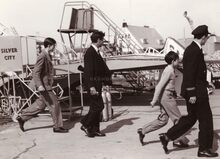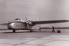 Een "dikneus" van Silver City is juist geland (of start). "De luchtvaartmaatschappij werd opgericht in 1946 te Londen door luchtvaartcommandantΒ Griffith Powell, met als doelΒ het aanleggen van een luchtvaartlijn voor vervoer van personeel en materiaal van een EngelseΒ zilvermijnexploitatieΒ naar een stadje in Broken Hill, dat wegens de aanwezige rijke zilveradersΒ "The Silver City" genoemdΒ wordt. Hieraan is de naam van de luchtvaartmaatschappij afkomstig. BritaviaΒ ltd., belastΒ met de uitbating van Silver City Airways kocht in 1948 de belangen van de oorspronkelijke stichtersmaatschappij af. SedertΒ 1954 bezitΒ Peninsular & Oriental Shipping Group grote belangen in BritaviaΒ ltd., die o.m. ook de Manx Airways te Blackpool en de Lancashire Airways Co opslorpte en in 1955 Air KruiseΒ opkocht. De maatschappij bezit een eigenΒ luchtvaartterreinΒ te Lydd, van waaruit lijnenΒ op Le Touquet, Calais, Oostende, Southampton-Cherbourg verzorgd worden. In 1960 werd de lijnΒ op Oostende veranderdΒ op de lijnΒ Manston-Oostende. Deze lijn kent in het zomerseizoen dagelijksΒ gemiddeld 25 diensten, waarvan een 4-tal air ferry. De station manager te Middelkerke, RenΓ© A. Hoornaert heeft gemiddeld 20 personeelsleden in dienst" In : Dit is West-Vlaanderen. Flandria, 1960. Dl.2,p.1119
