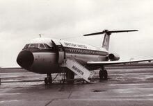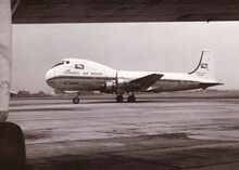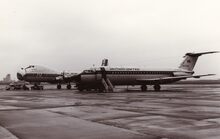Een straalvliegtuig van BUA (British United Airways) op de Oostendse luchthaven.