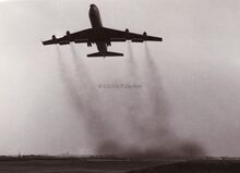 Start van een Boeing 707 vanop de Oostendse luchthaven.