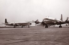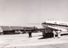 Een DC4 van Sabena op de tarmac van de Oostendse luchthaven,er naast staat een toestel van Sobelair.