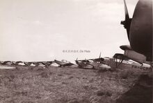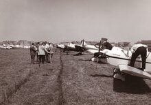 Sport- en toerismevliegtuigen verzameld op het Oostends vliegveld ter gelegenheid van een luchtvaartshow (?).