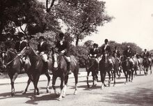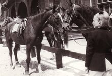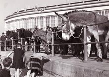 Paarden (van de rijkswacht ?) gestald in de Koninklijke Stallingen aan de Koninginnelaan.