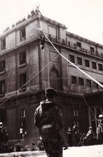 Para's geven een demonstratie in afdaling van op het dak van het Thermenpaleis.