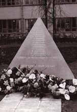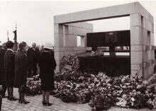 Huldiging aan het monument voor de slachtoFfers van de concentratiekampenΒ op het kerkhof van de Stuiverstraat.