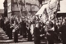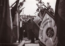 Een vaderlandse plechtigheid op het Wapenplein.Rechts staat de gekende fotograaf Maurice ANTHONY.