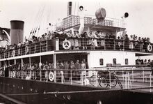 Formaat : 13 x 18 cm. - Veel passagiers aan boord van de pakketbootΒ "Prinses Astrid" bij de afvaart naar Dover.