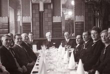 Banket in "La Renommée" op de Albert I Promenade ter gelegenheid van het jarig bestaan van (?).Tweede van rechts Jan PIERS de latere burgemeester.