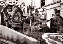 Praalwagen van Sint-Elooi (patroon der metaalbewerkers) in .... (?)Β ter hoogte van het O.L.V. College in de Vindictivelaan.