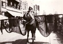 Een "paardenvisser" compleet met bennen en sleepnet in de OmmegangΒ van de Zeewijding op de Vindictivelaan.