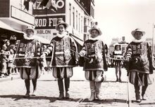Vier pages in de stoet der Zeewijding op de Vindictivelaan.