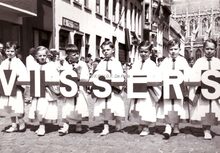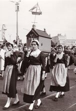De stoet der Zeewijding. Een groep meisjes op de Visserskaai.