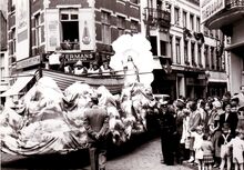 Een praalwagen uit de stoet der Zeewijding op de hoek van de Kapelle - en Jozef II-straat.