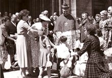Monseigneur DE SMEDT,bisschop van Brugge,voor de Sint Petrus en Pauluskerk op de dag der Zeewijding.