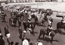 De Zeewijdingsstoet op de Vindictivelaan ter hoogte van de Kapellestaat.Op de achtergrond het station.