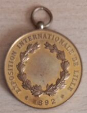 Op de keerzijde : rondom boven EXPOSITION INTERNATIONALE DE LILLE, rondom onder β 1982 β , centraal een open lauwerkrans onderaan samengestrikt