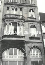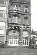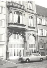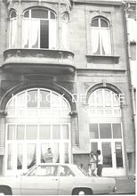 Formaat : 8 x 13 cm. - Foto werd genomen vanuit de Alfons Pieterlaan aan het Kruispunt "Petit Parisβ, hoek Torhoutse- en Nieuwpoortsesteenweg. In de achtergrond apotheek Beuselinck, en rechts daarvan cafΓ© Aviso. Dat was het lokaal van de Oostendse fietsvereniging βOstend Stadiumβ en de vogelpikclib "Aviso"