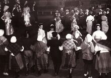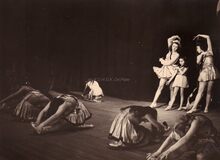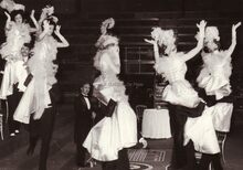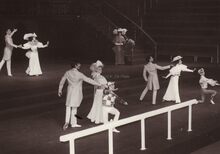 Scene uit de Oostendse RevueΒ 1950, dansers met hun partner op de schouder.