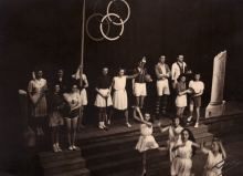 Tweede bedrijf : tafereel 4 : "Ballet der sporten" : scene uit de Oostendse Revue 1948,sportief Oostende wordt voorgesteld.