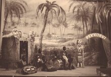 Tweede bedrijf : tafereel 1 : "Oostendenaars op conge paye bij de Zoulou's" : Afrikaanse scene uit de Oostendse Revue. Pekkoek = drop.