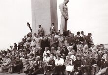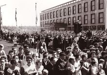 De vernielingen uit W.O. II zijn nog te zien op de achtergrond.