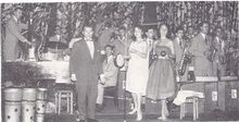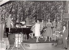Wij herkennen : Franz Lebrun (leider en dirigent), Roger Vanhaverbeke (cb), Rudy Frankel (dm), Franz AndrΓ© (p), Babe Broke (vc), Linda Kerby (vc)