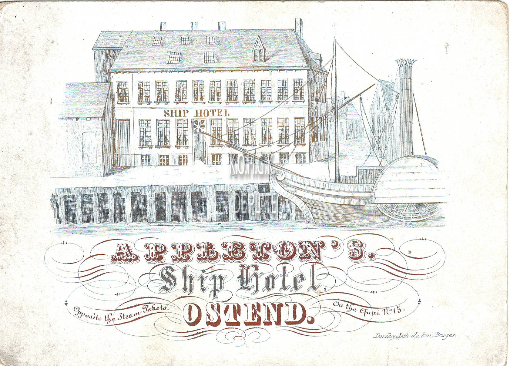 Formaat : 10,2 x 14,2 cm. - Appleton's Ship Hotel Ostend. Opposite the Steam Pakets On the Quai N° 15.