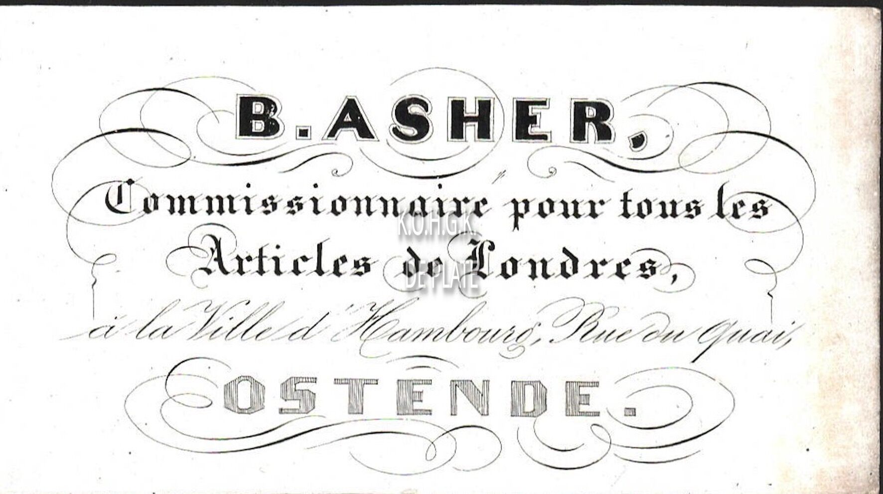 Formaat : 4 x 8,8 cm. - B. Asher, Commissionnaire pour tous les Articles de Londres à la Ville d'Hambourg Rue du Quai Ostende.