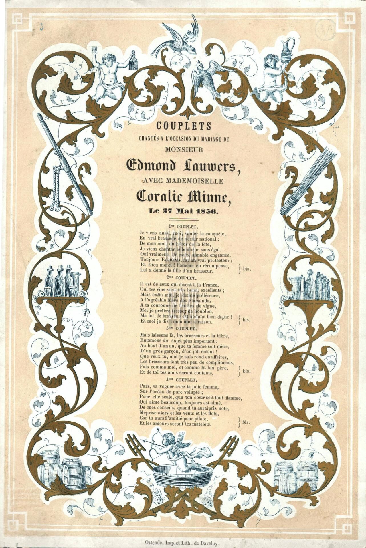 Geporseleinde kaart : Edmond Lauwers-Coralie Minne. Mariage