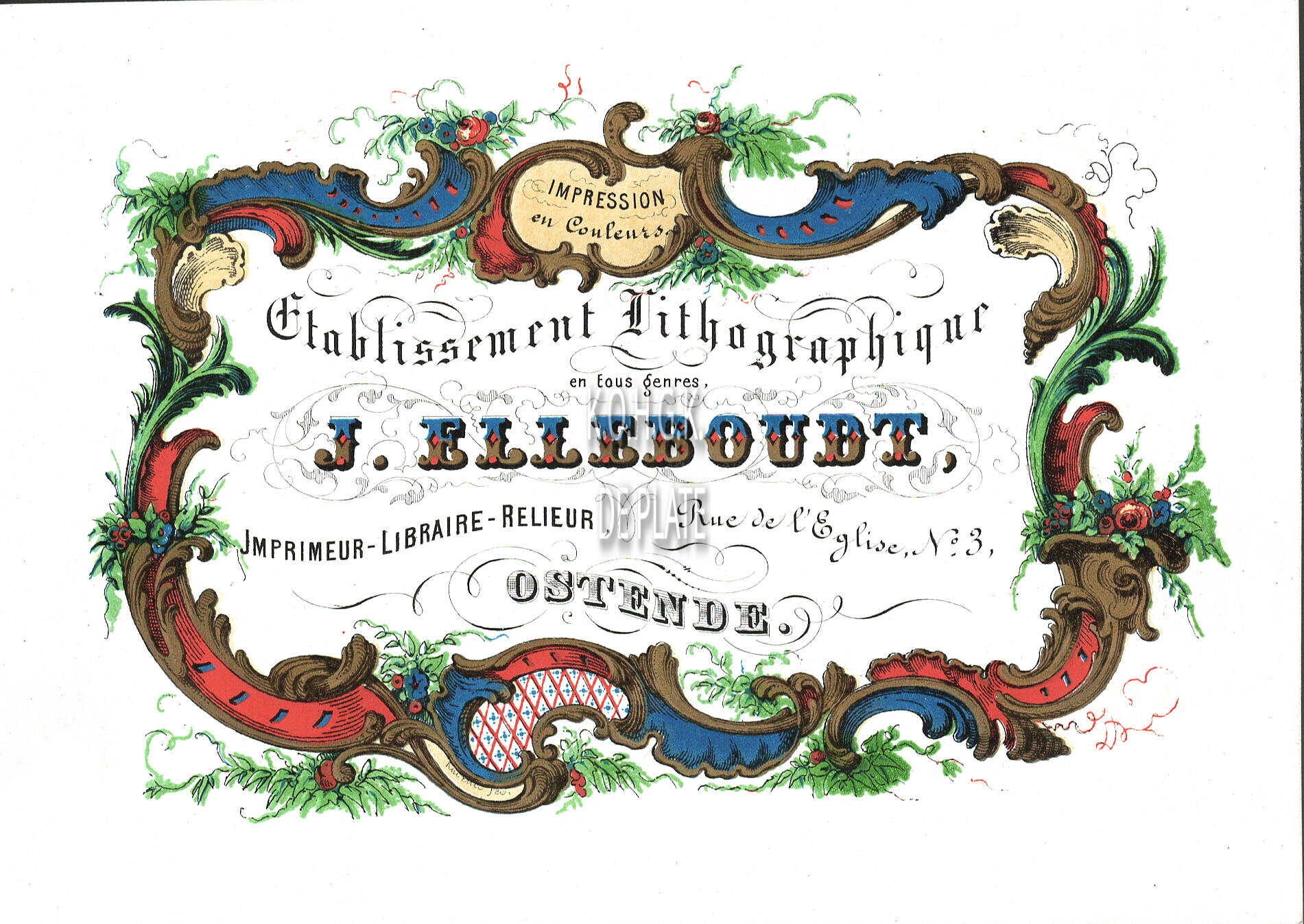 Formaat : 11,5 x 16,1 cm. - Etablissement Lithographique J.Elleboudt, Imprimeur-Libraire-Relieur Rue de l'Eglise N° 3 Ostende Impression en couleur.