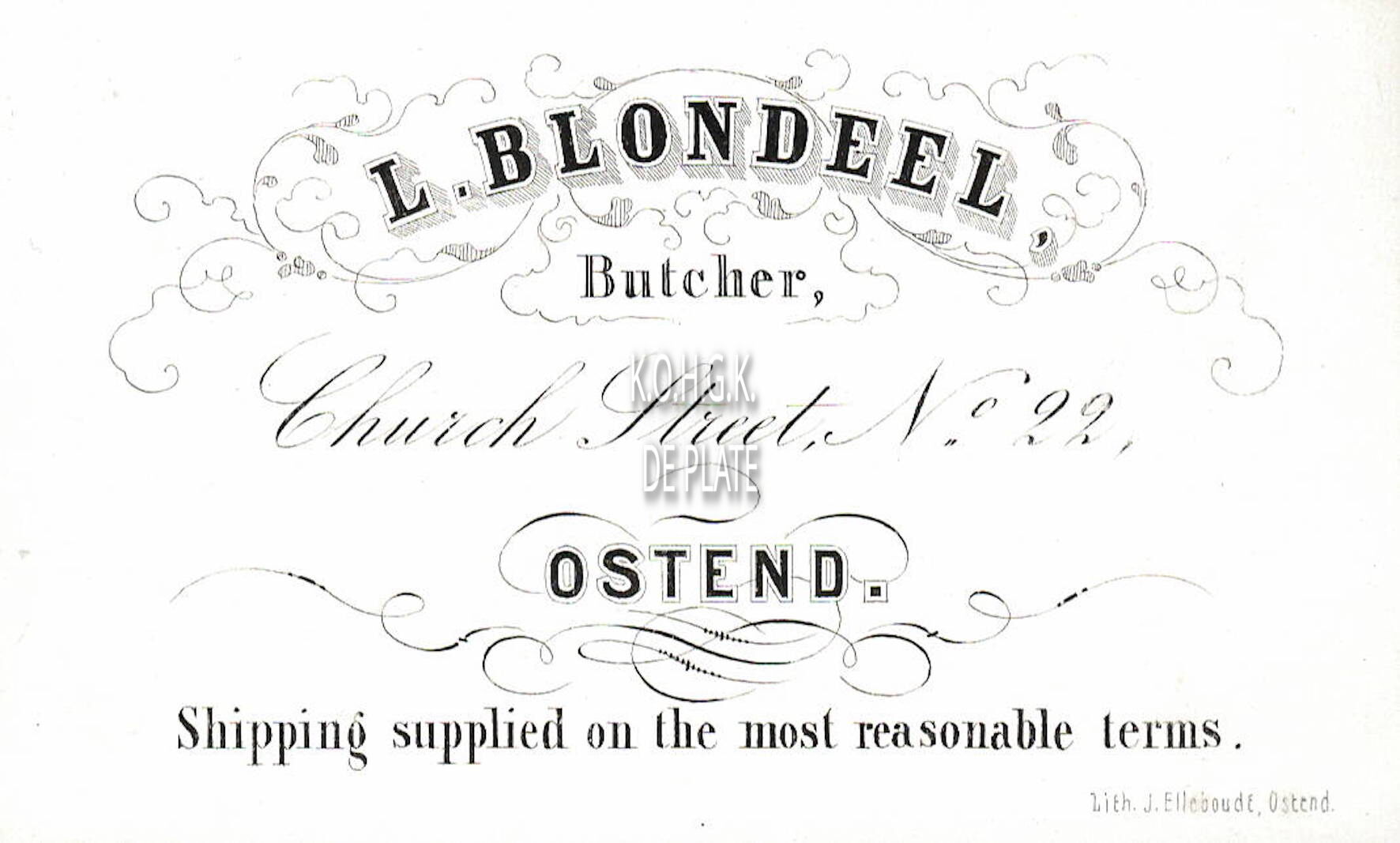 Formaat : 5,6 x 9,2 cm. - L. Blondeel, Butcher, Church Street N° 22. Ostend Shipping supplied on the most reasonable terms