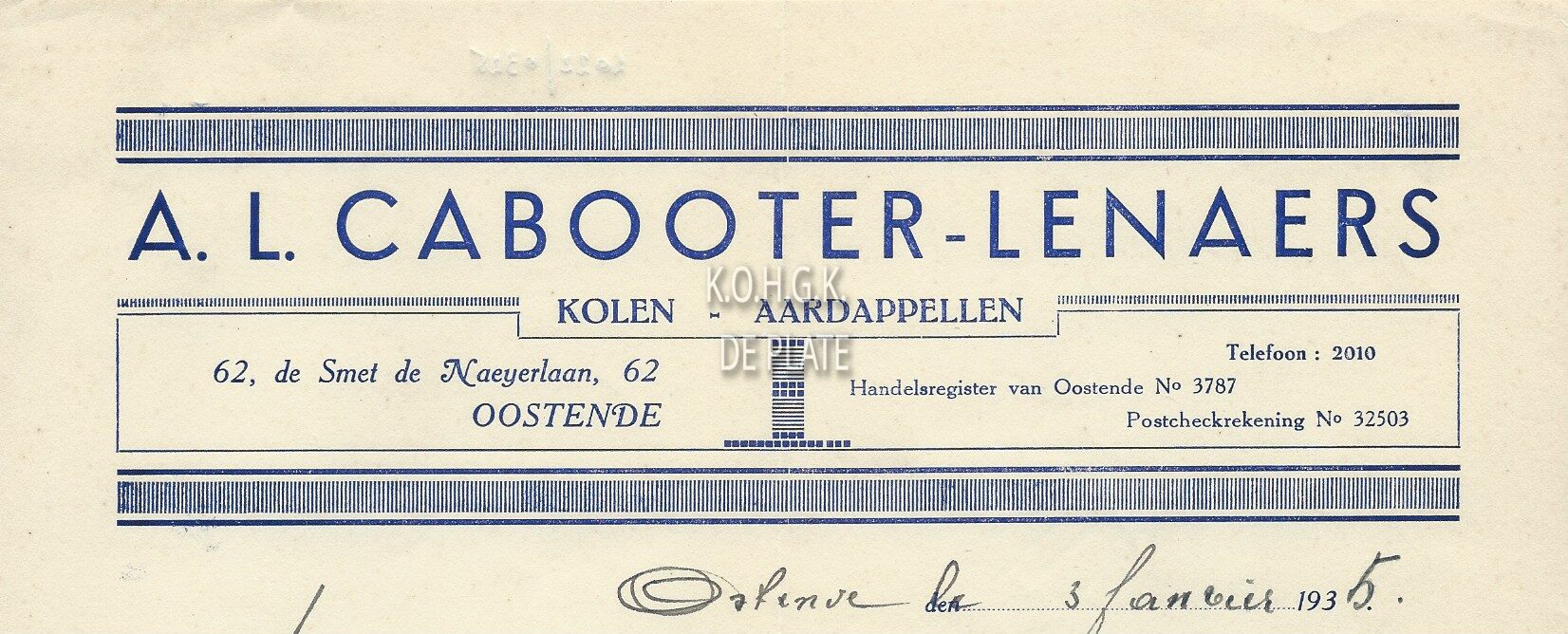 Omschrijving Brief naar meester Van de Male Trefwoorden HANDEL ; HANDELSCORRESPONDENTIE A.L. CABOOTER-LENAERS (AARDAPPEL- EN KOLENHANDEL) HANDEL ; KOLEN EN ANDERE BRANDSTOFFEN GRAAF DE SMET DE NAEYERLAAN HANDEL ; GROENTEN EN FRUIT Plaatskenmerk ARCHIEF 110 ARCHIEFDOOS HANDEL Inventarisnummers 2022/0325 03/ 02/ 1935 Herkomst AANKOOP Print
