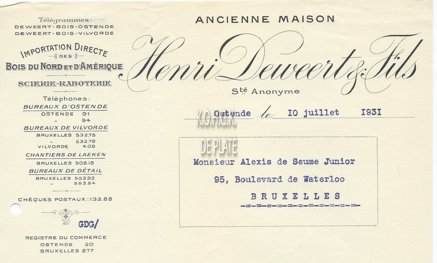 Oud Huis Henri Deweert & Fils, nv. Houtimport. Ontstaan door overname van een houthandelsbedrijf dat door Henri Deweert werd opgericht. De firma importeert Noords-, Amerikaans- en Braziliaans hout, bedoeld voor de binnenlandse markt. Verkoop uitsluitend aan afnemers voor voortverkoop. Voor de detailhandel werd een andere maatschappij gesticht, "Oostendse Houtmaatschappij nv". De vennootschap heeft een afdeling voor scheepsuitrusting. Het totaal aan personeel bedraagt 95 eenheden. De firma heeft vestigingen te Oostende, Antwerpen en Gent. In : Dit is West-Vlaanderen : steden, gemeenten, bevolking : dl.2 / Lucien Dendooven. Flandria, 1960. p.1278