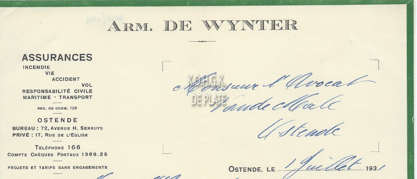 Omschrijving Brief naar meester Vande Male Trefwoorden HANDEL ; HANDELSCORRESPONDENTIE ARM. DE WYNTER (VERZEKERINGEN) HENDRIK SERRUYSLAAN HANDEL ; VERZEKERINGSMAATSCHAPPIJEN Plaatskenmerk ARCHIEF 110 ARCHIEFDOOS HANDEL Inventarisnummers 2022/0341 01/ 07/ 1931 Herkomst AANKOOP Print