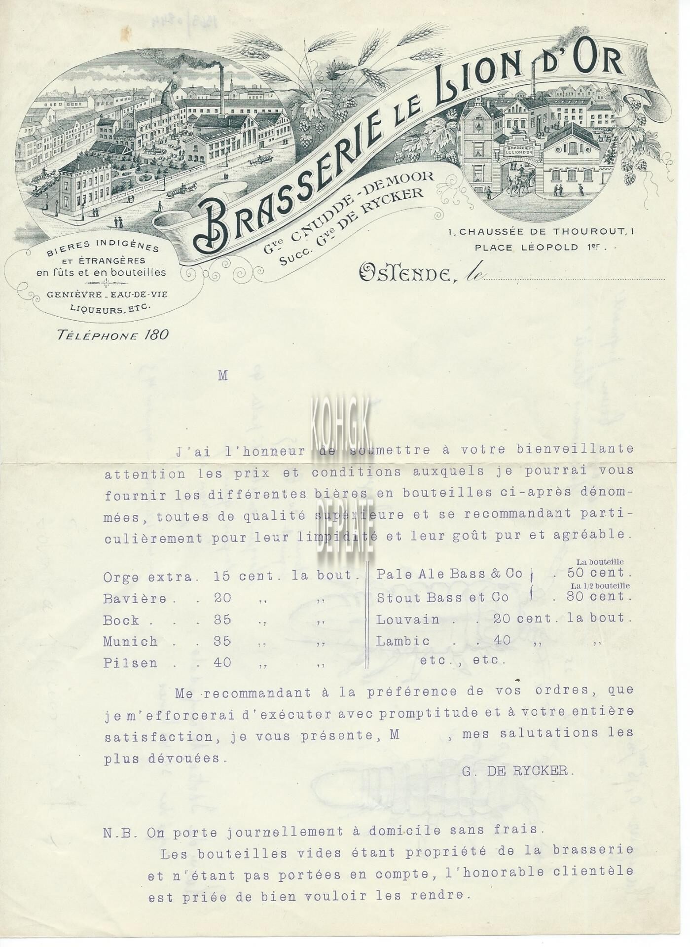 Omschrijving Voorheen : Cnudde-Demoor. Opvolger : De Rycker Trefwoorden HANDEL ; HANDELSCORRESPONDENTIE LE LION D'OR (BIERBROUWERIJ) NIJVERHEID ; BIERBROUWERIJEN CNUDDE-DEMOOR (BIERBROUWERIJ) DE RYCKER GUSTAVE (BROUWER) CNUDDE GUSTAVE (°1844- ) (BROUWER POLITICUS) TORHOUTSESTEENWEG LEOPOLD I-PLEIN Plaatskenmerk ARCHIEF 110 ARCHIEFDOOS HANDEL Inventarisnummers 1963/0844 Print