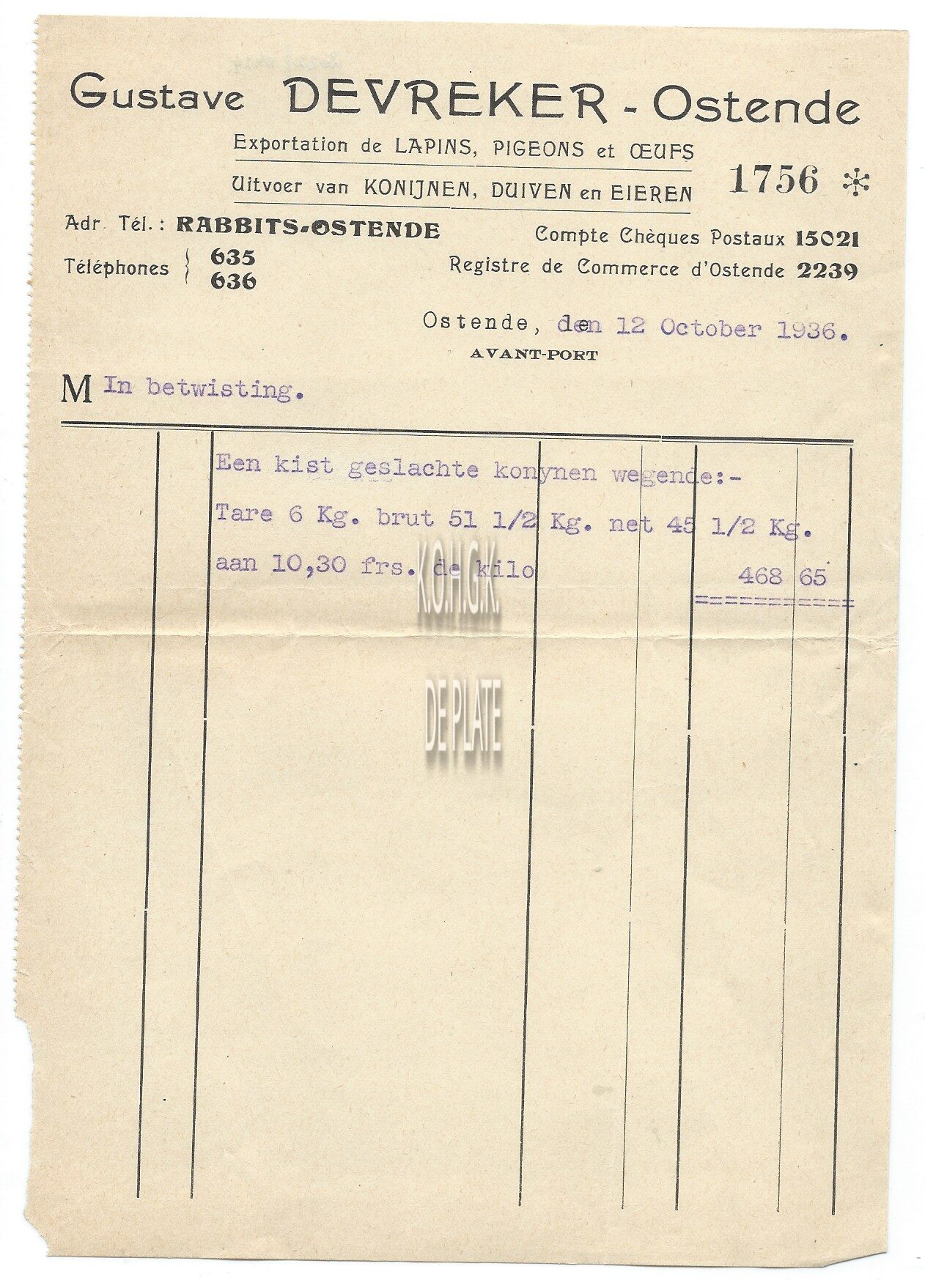 Trefwoorden HANDEL ; HANDELSCORRESPONDENTIE DEVREKER GUSTAVE (WILD GEVOGELTE) Plaatskenmerk ARCHIEF 110 ARCHIEFDOOS HANDEL Inventarisnummers 2022/0424 12/ 10/ 1936 Herkomst AANKOOP Print