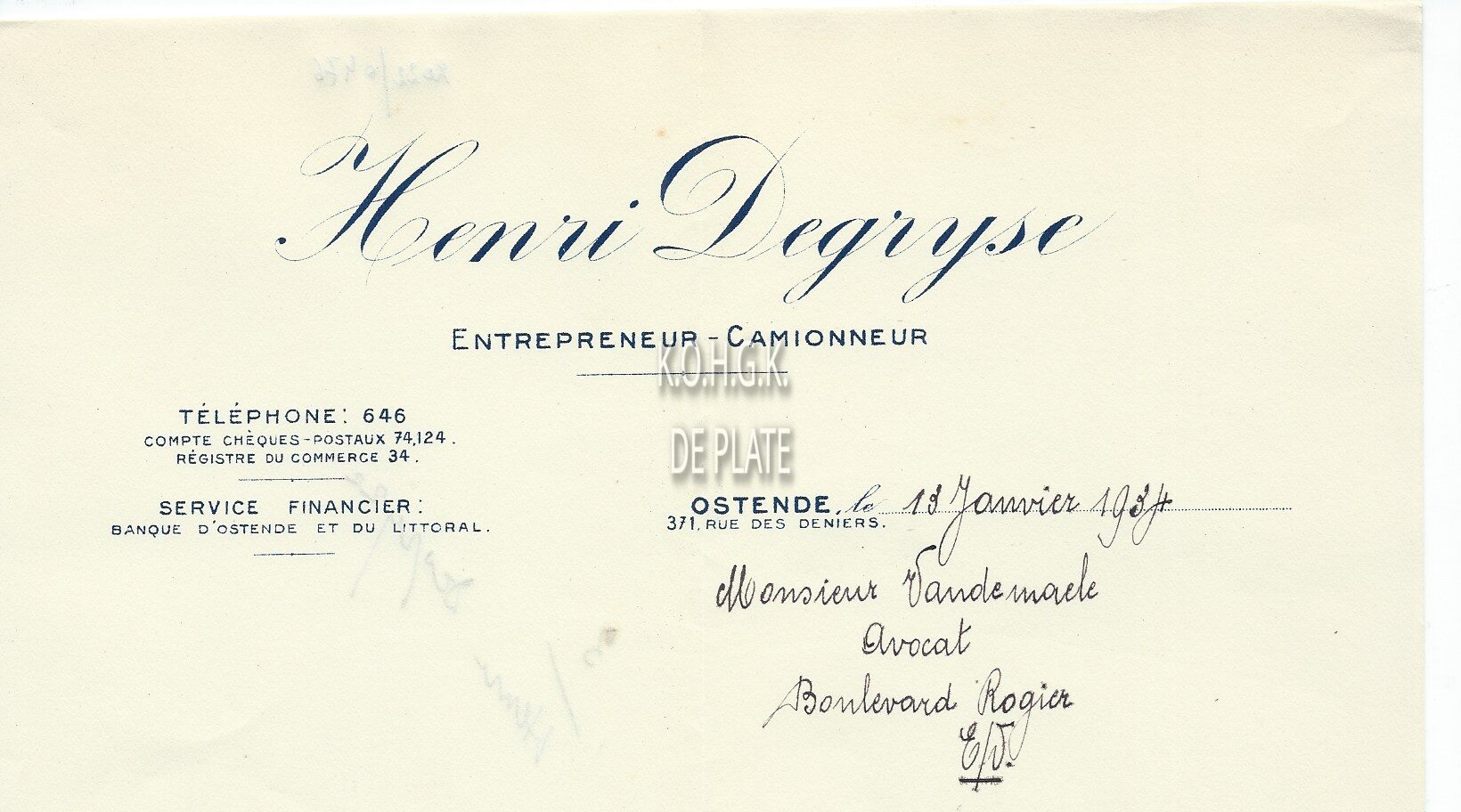 Trefwoorden HANDEL ; HANDELSCORRESPONDENTIE DEGRYSE HENRI (VERVOER AANNEMER) STUIVERSTRAAT Plaatskenmerk ARCHIEF 110 ARCHIEFDOOS HANDEL Inventarisnummers 2022/0476 13/ 01/ 1934 Herkomst AANKOOP Print