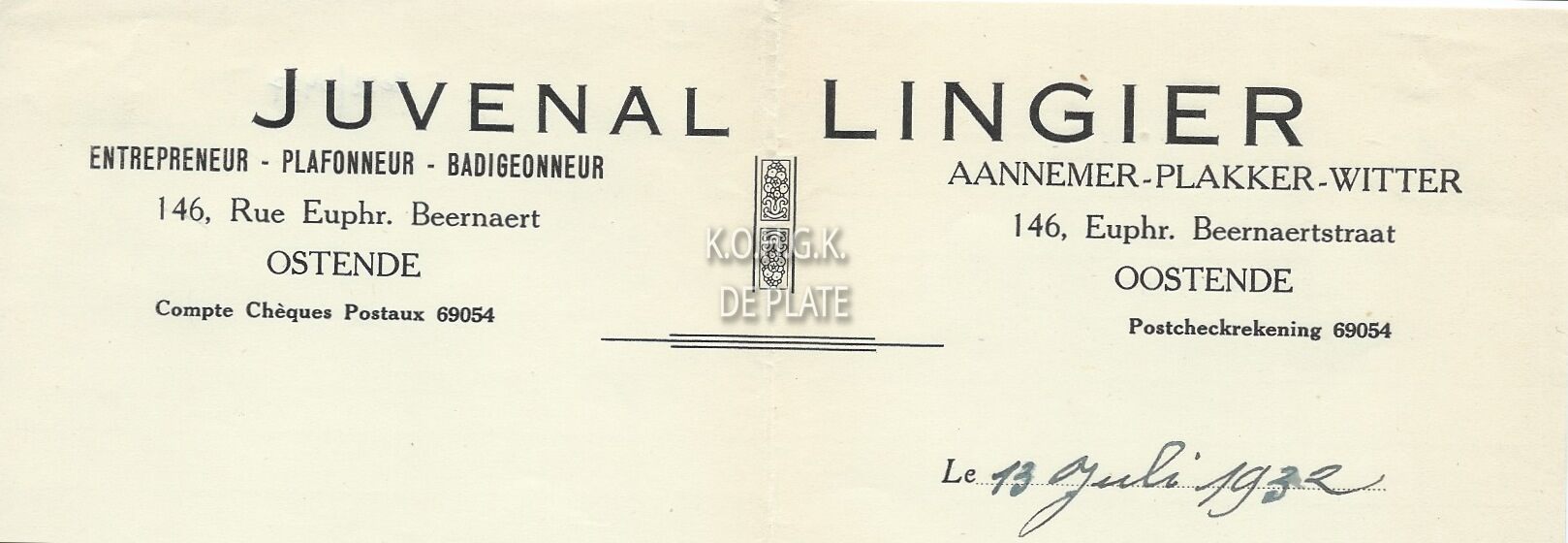 Omschrijving Aannmer - Plakker - Witter Trefwoorden HANDEL ; HANDELSCORRESPONDENTIE LINGIER JUVENAL (AANNEMER) EUPHROSINA BEERNAERTSTRAAT NIJVERHEID ; AANNEMERS Plaatskenmerk ARCHIEF 110 ARCHIEFDOOS HANDEL Inventarisnummers 2022/0437 13/ 07/ 1932 Herkomst AANKOOP Print