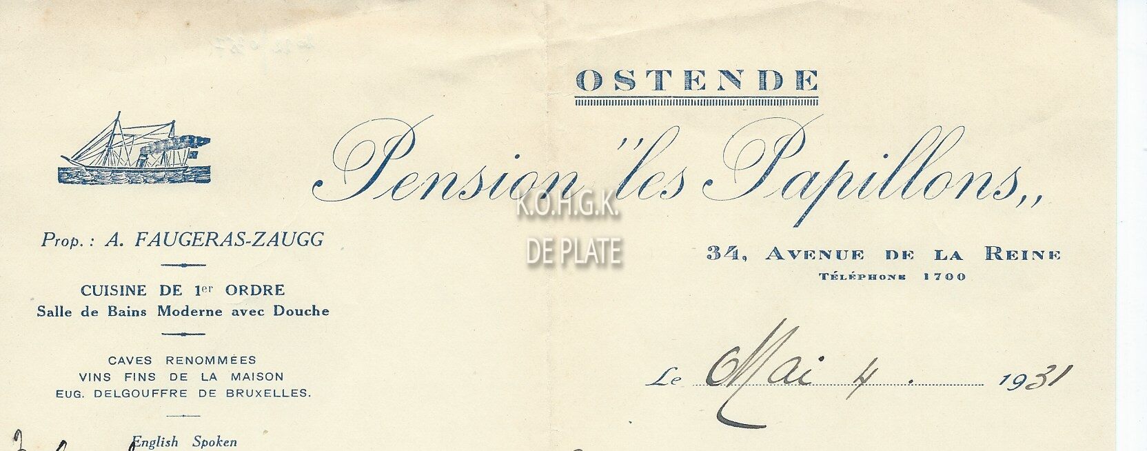 Pensionhouder : A. Faugeras-Zaugg. - Cuisine de 1er ordre. Salle de bains moderne avec douche. Caves renommées, vins fins de la maison Eug. Delgouffre de Bruxelles. - English Spoken