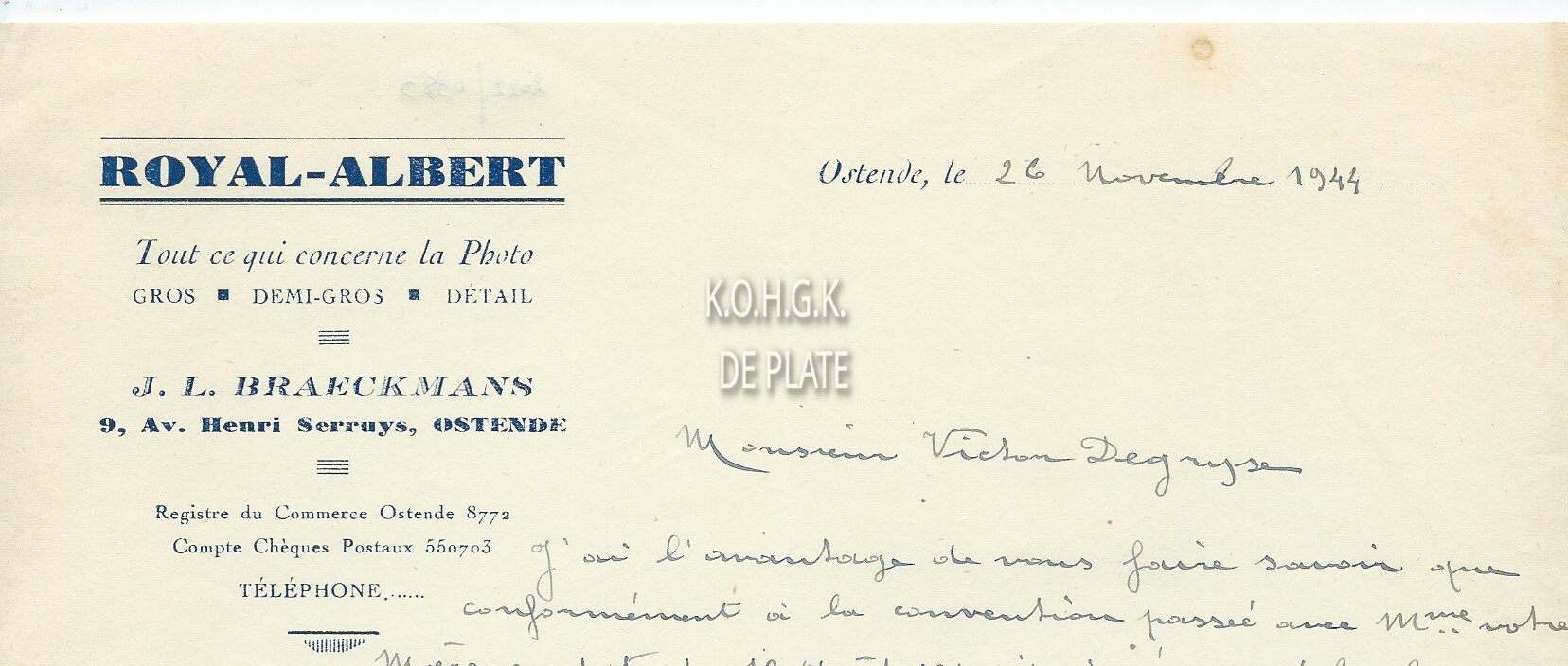 Handelscorrespondentie : Royal-Albert. J.L. Braeckmans. Fotografie. Hendrik Serruyslaan 9, Oostende