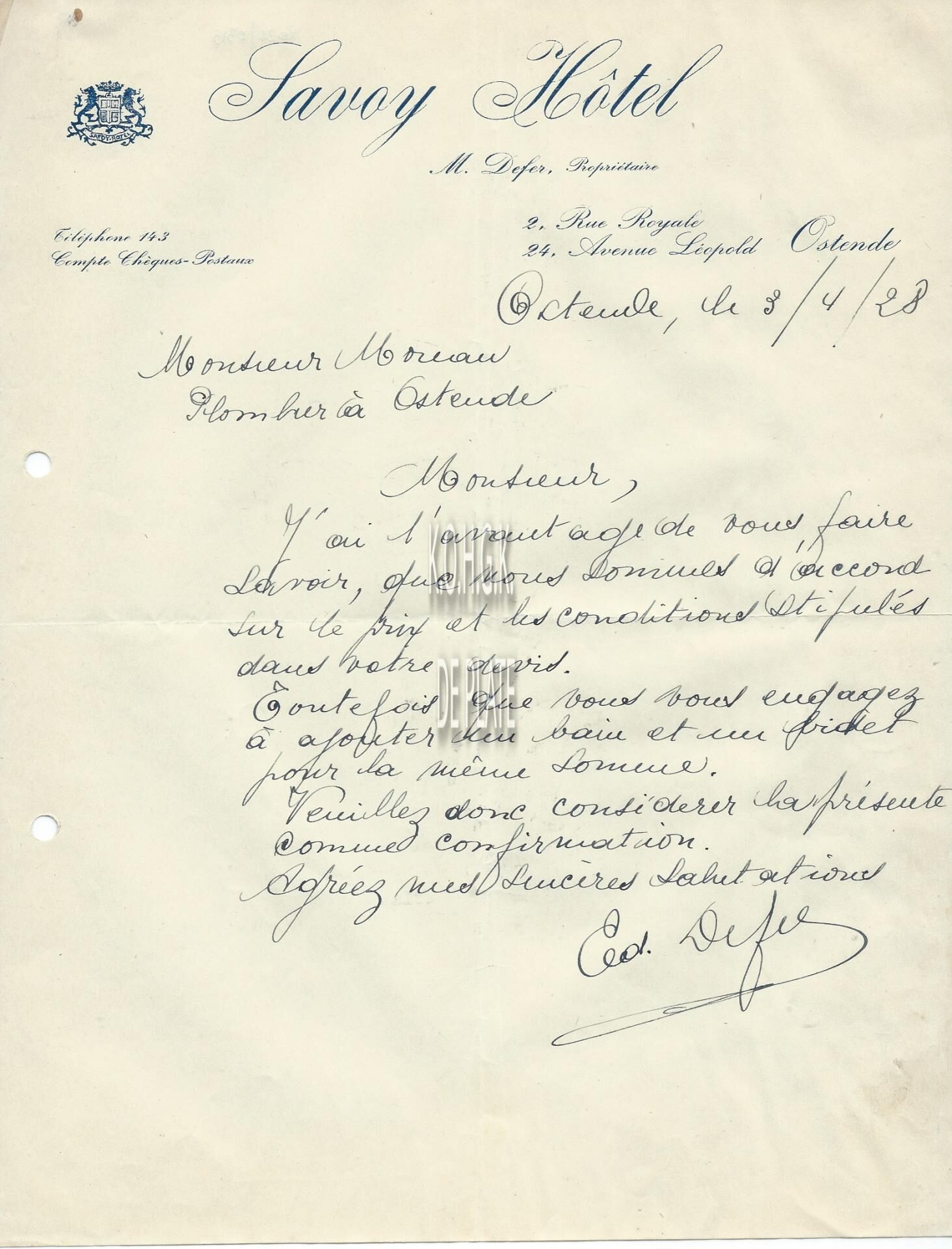 Omschrijving Uitbater : Ed. Defer Trefwoorden HANDEL ; HANDELSCORRESPONDENTIE SAVOY HÔTEL DEFER ED. (HOTELIER) KONINGSSTRAAT LEOPOLDLAAN HOTELS (OUDE) Plaatskenmerk ARCHIEF 110 ARCHIEFDOOS HANDEL Inventarisnummers 2022/0313 03/ 04/ 1928 Herkomst AANKOOP Print