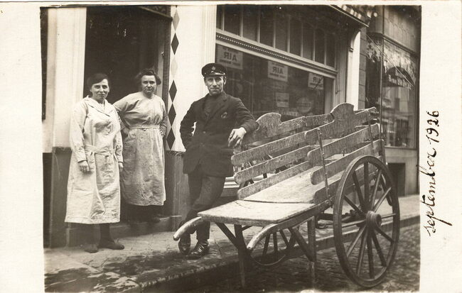 Winkel van verven en vensterglas in de Witte Nonnenstraat. Utgegebaat door de familie Delaruwiere.