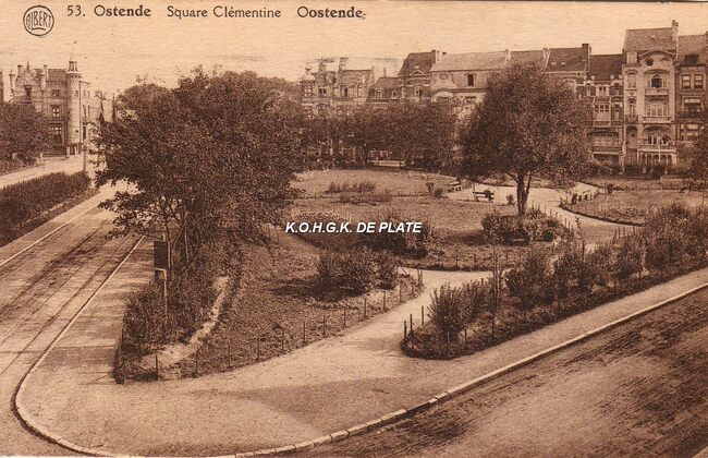 Albert, N° 55. - Ostende - Square Clémentine. - Genaamd naar de dochter van Leopold II. Driehoekig plein dat samen met het Prinses Stefanieplein de vanaf 1889 aangelegde Koninginnelaan verfraaien. Deze twee squares zijn…