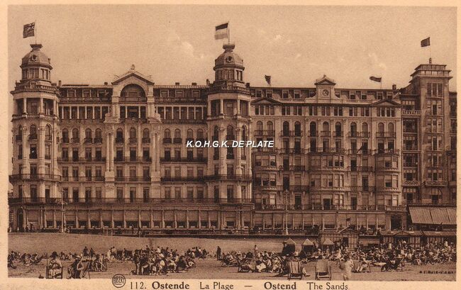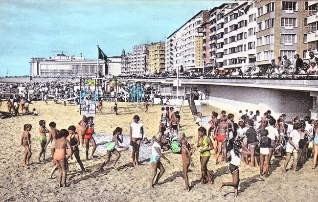 Kursaal coté ouest. - Strandrecreatie op het Groot Strand nabij de westelijke gevel van het derde Kursaal langs de Zeedijk