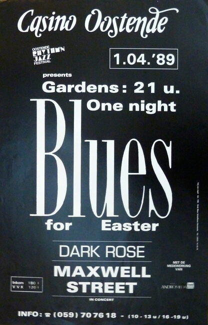Affiche : Dark Rose, Maxwell Street. Blues for Easter. Gardens Casino Oostende. 01/04/1989