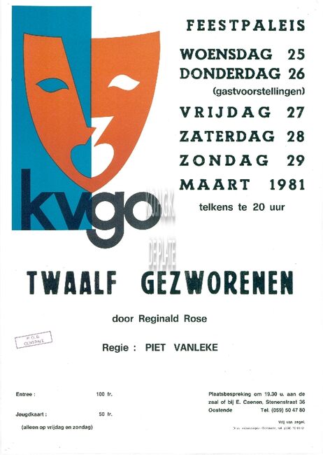 Formaat : 42 x 30 cm. Door Reginald Rose. Regie: Piet Vanleke.