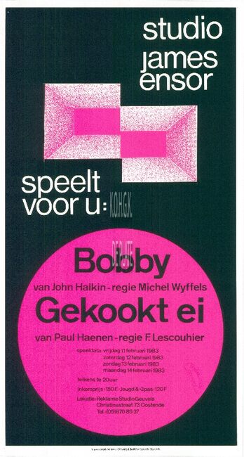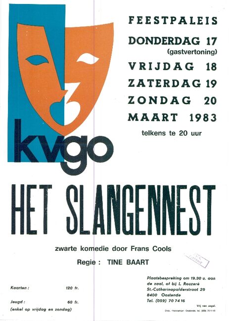 Formaat : 42 x 30 cm. Zwarte komedie door Frans Cools. Regie: Tine Baart.