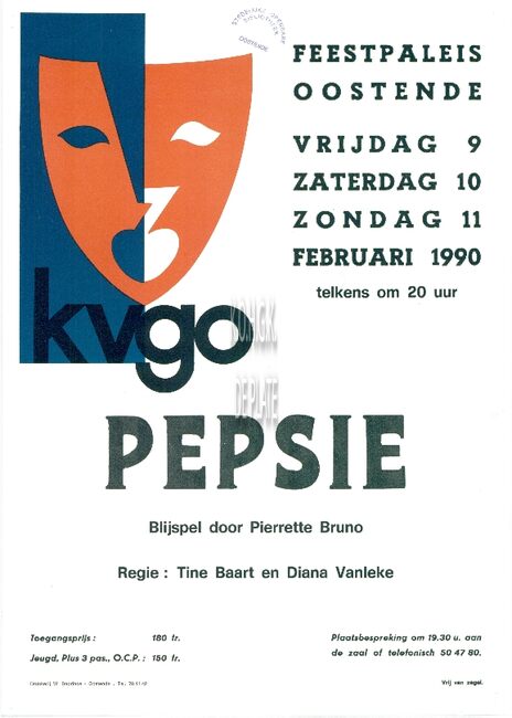 Formaat : 42 x 30 cm. Blijspel Pierrette Bruno. Regie: Tine Baart en Diana Vanleke.