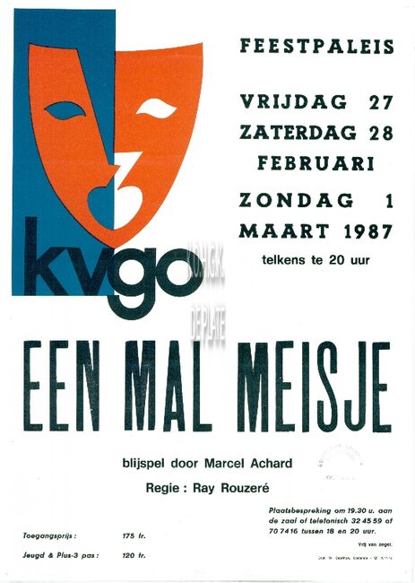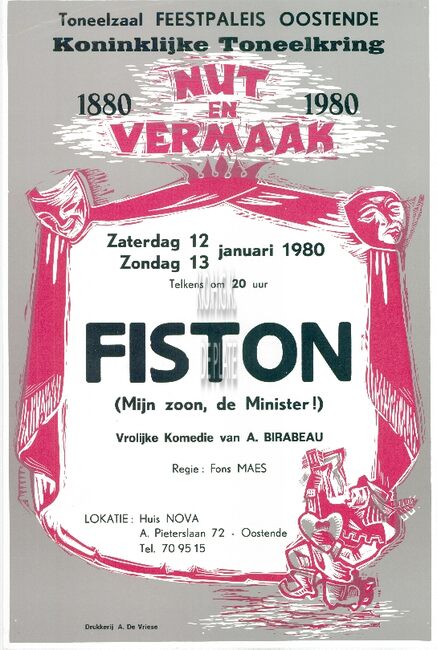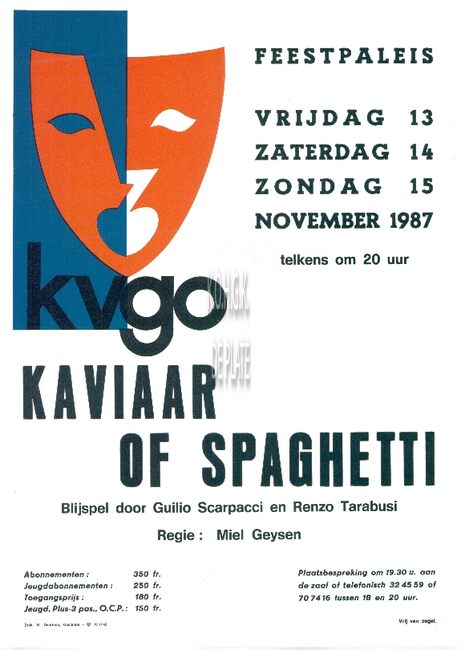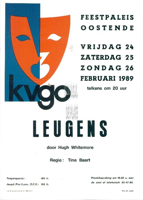 Formaat : 55 x 38 cm. Met steun van het Noordstarfonds. Toneelkring van Vlaamse Klub Kust. Een satirische klucht van Dario Fo in regie van Paul Houwen.