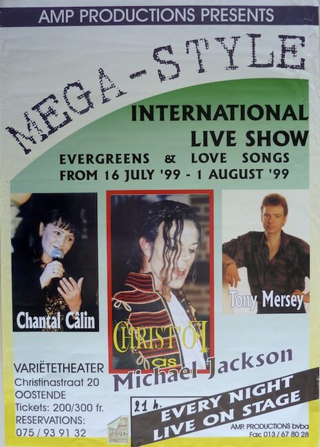 Formaat : 59 x 42 cm. Internationale Live Show. Chantal Câlin, Christ'of as Michael Jackson, en Tony Mersey.